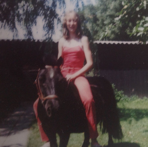 Dit is mijn allereerste echte liefde; Droppie. Een Shetlander pur sang. Hij was eigenwijs, koppig, voor niets of niemand bang en heel robuust. Zoals blijkt, hij kon mij makkelijk dragen. Nu zou ik er niet meer voor kiezen om erop te gaan zitten!